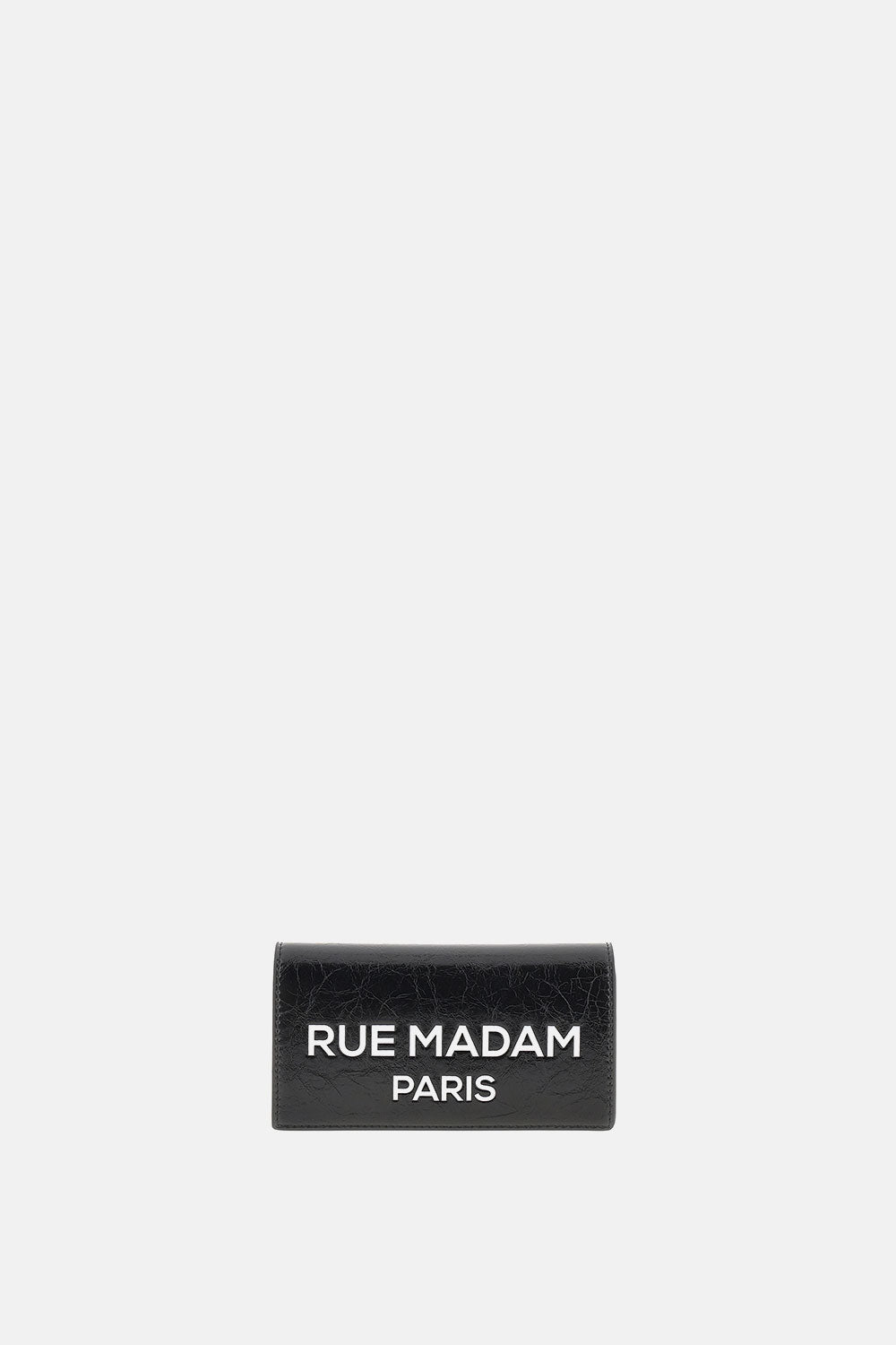Borsa a tracolla porta smartphone in ecopelle vegan con logo impresso e stampato. Spazio porta carte e porta monete. Tracolla a catena removibile e fodera interna in cotone con tasca. L 19 H 10 P 5