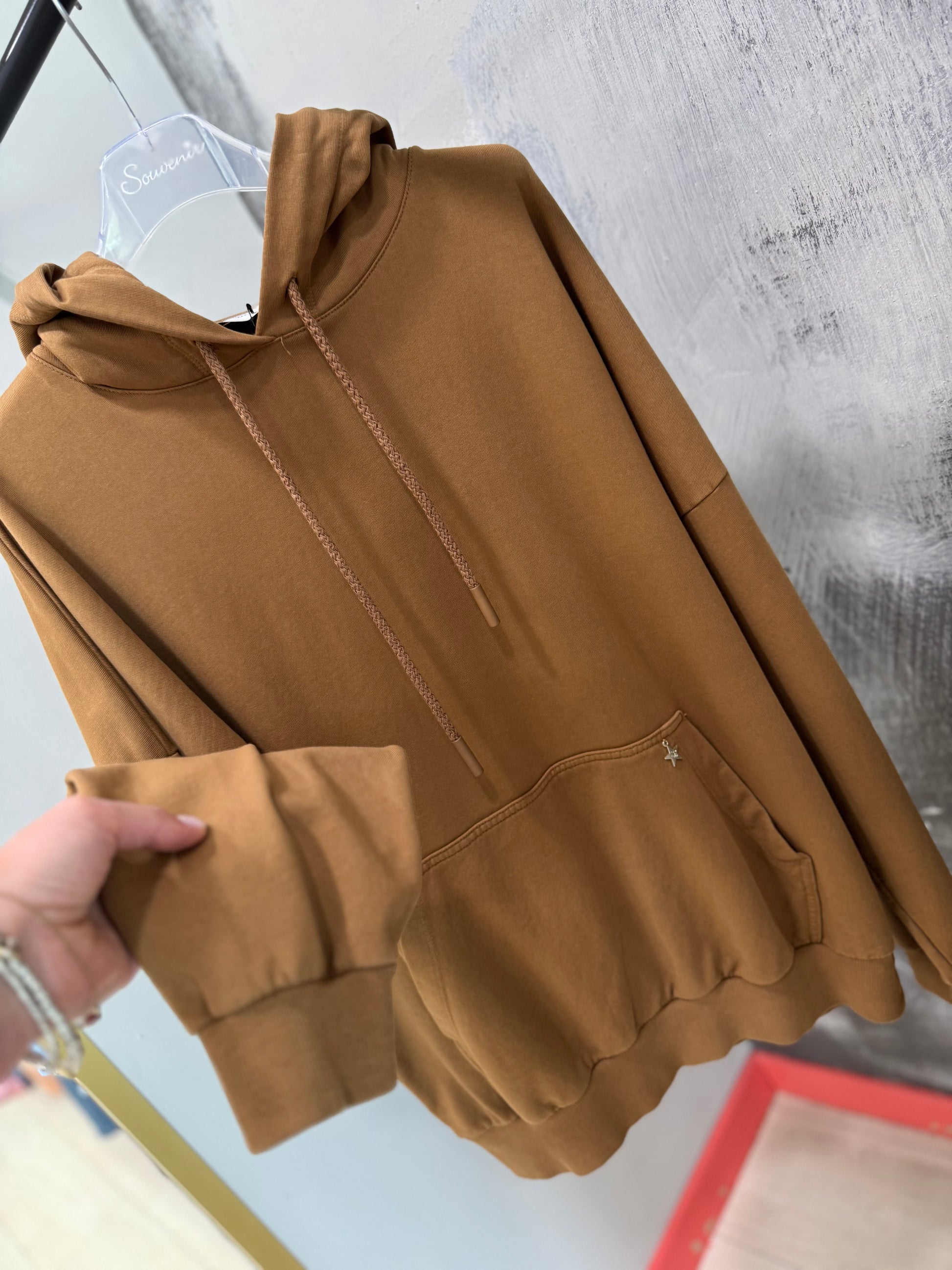 Felpa in cotone cammello con cappuccio e tasca frontale