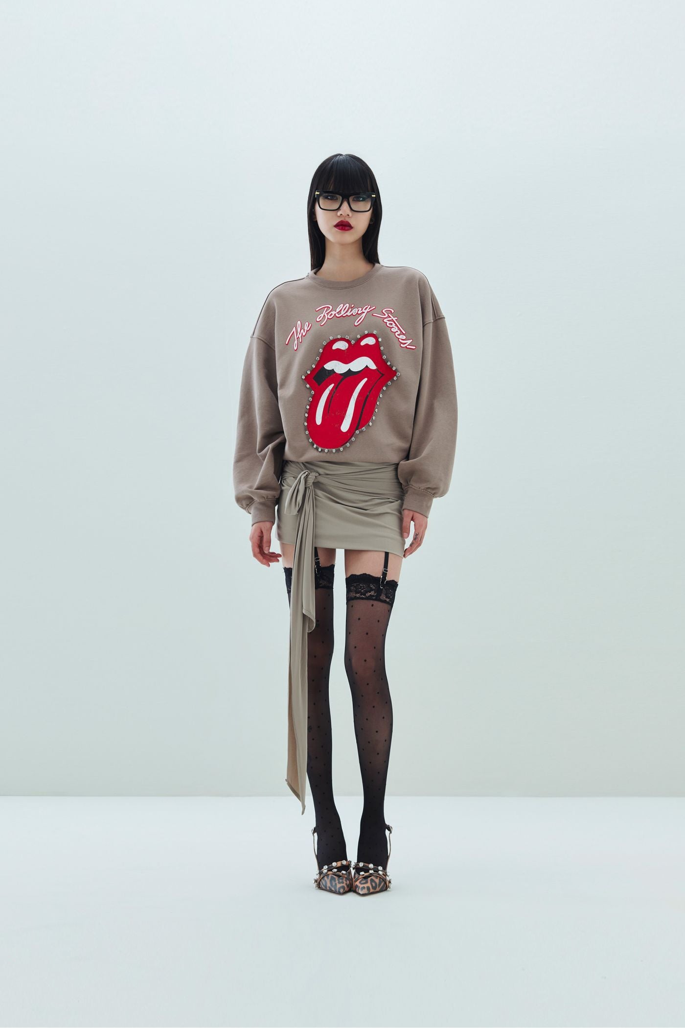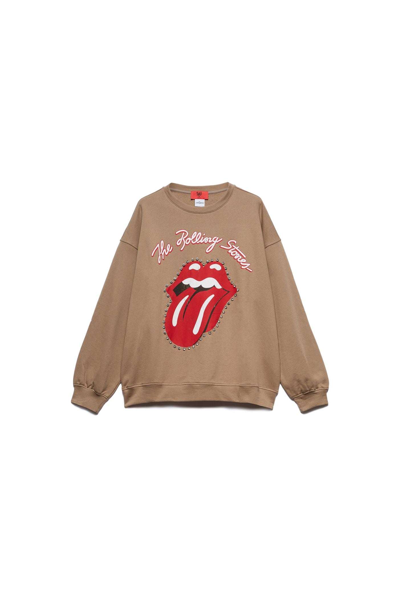 • Felpa Rolling Stones in cotone • Stampa logo RS con strass sul davanti • Stampa lettering "Aniye By" sul retro • Girocollo • Maniche lunghe