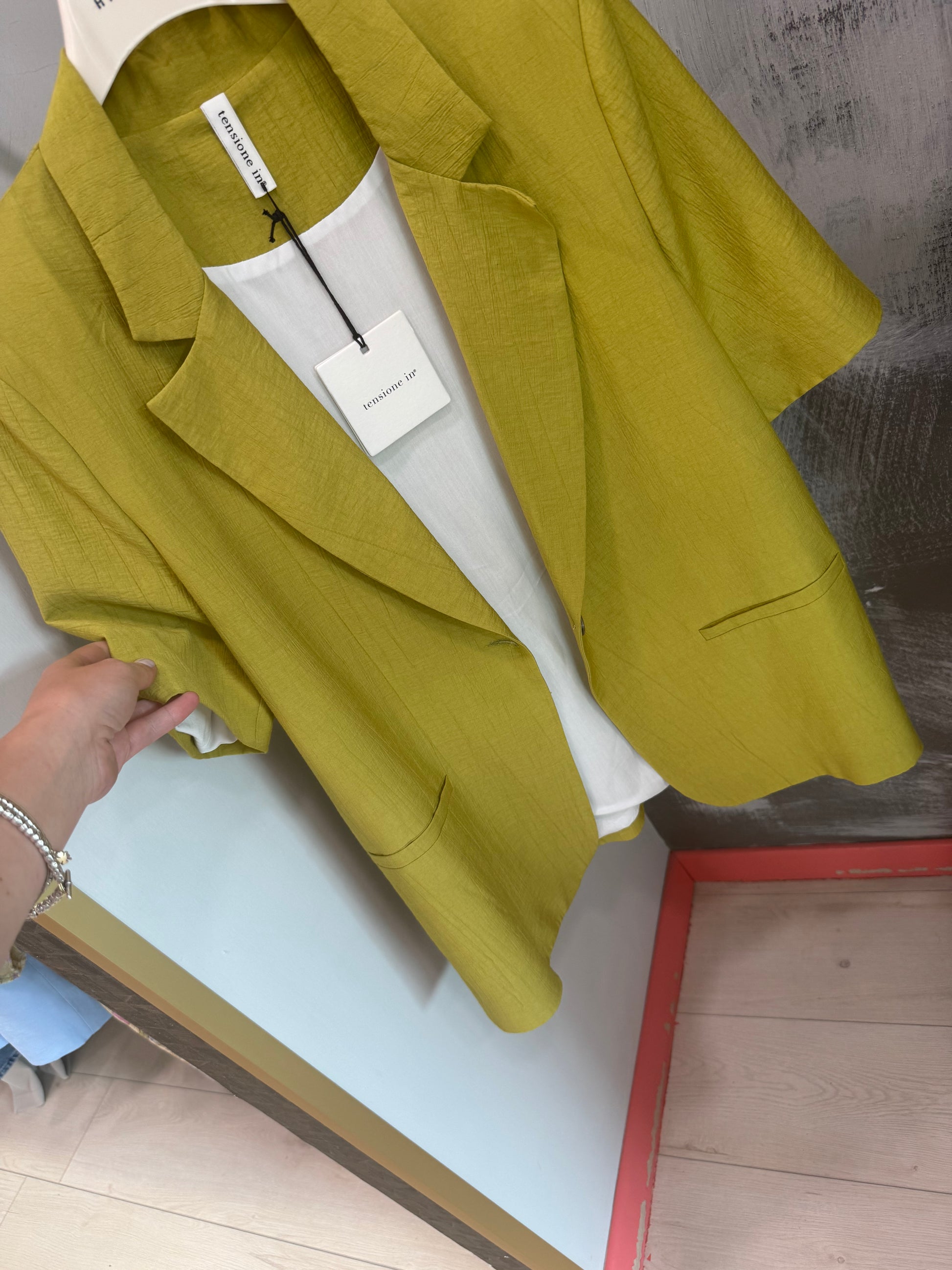 Giacca lime, manica corta, fodera interna in cotone, spacchi sul retro.