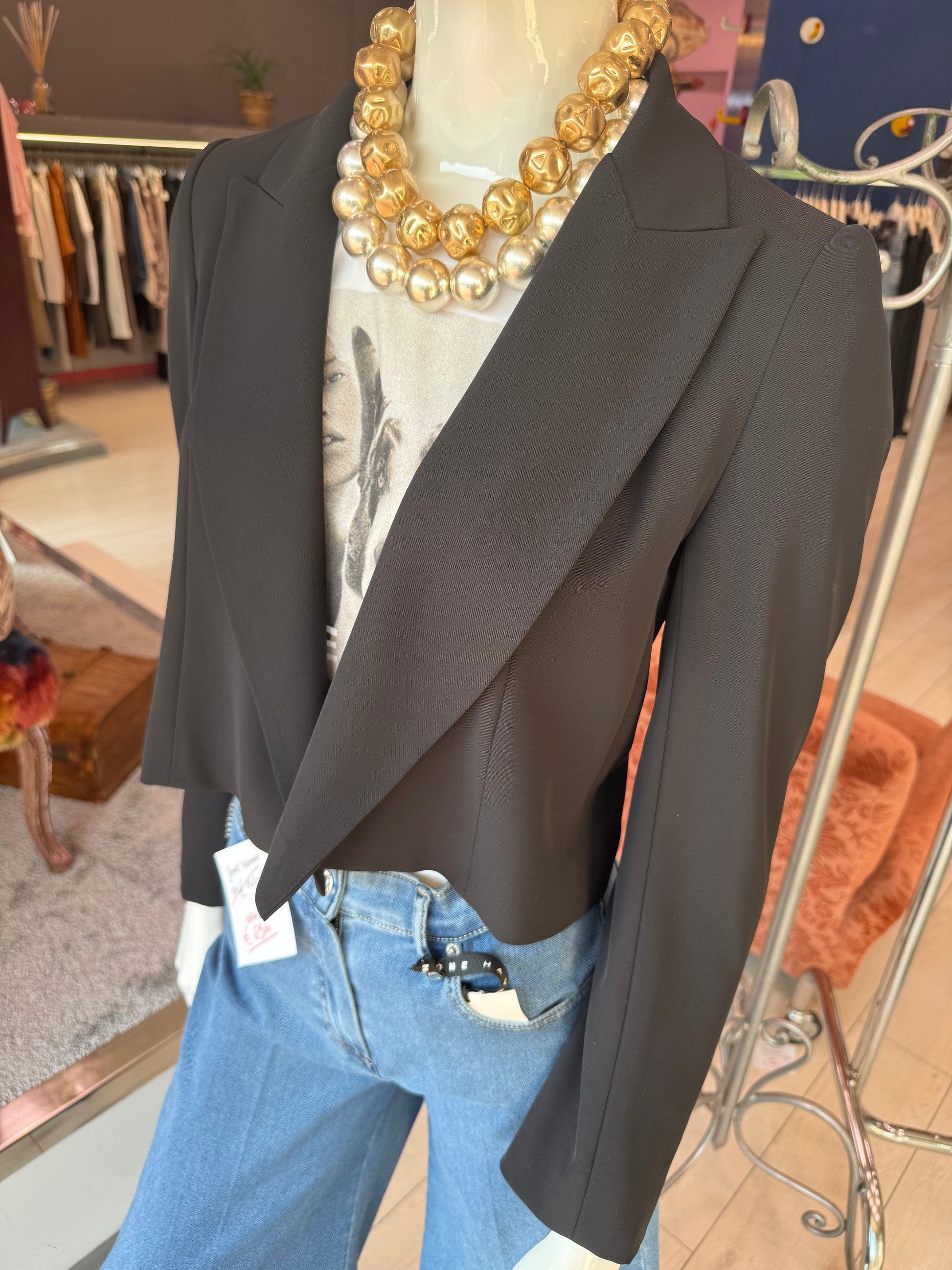 GIACCA APERTA CON REVER CLASSICO E MANICHE LUNGHE AFFUSOLATE.