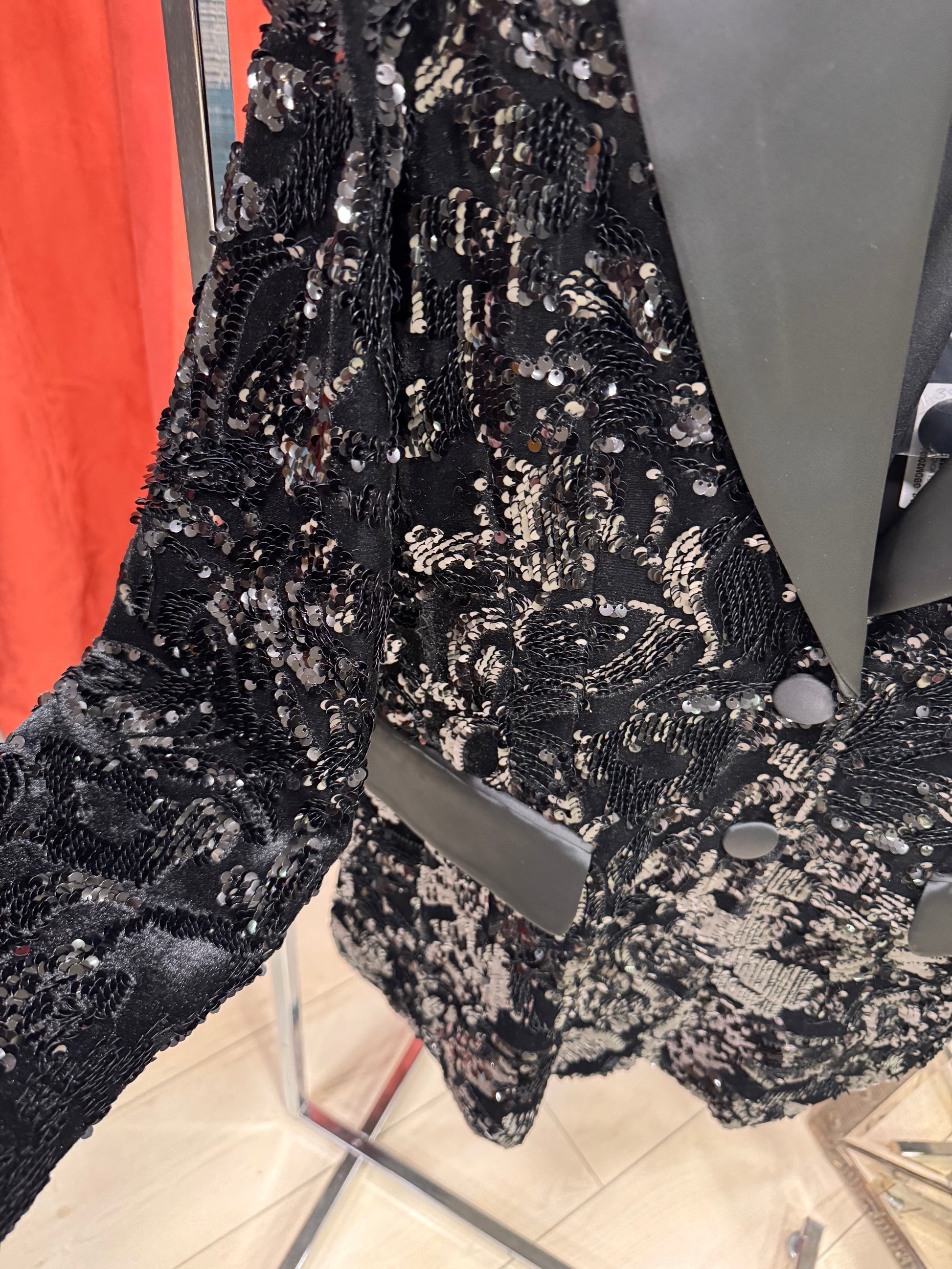 Giacca a 2 bottoni in paillettes e tessuto lucido, taglia 42