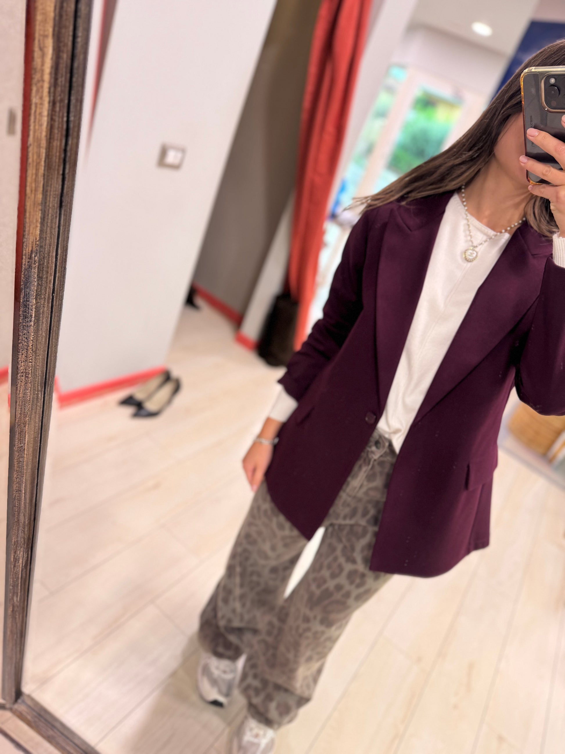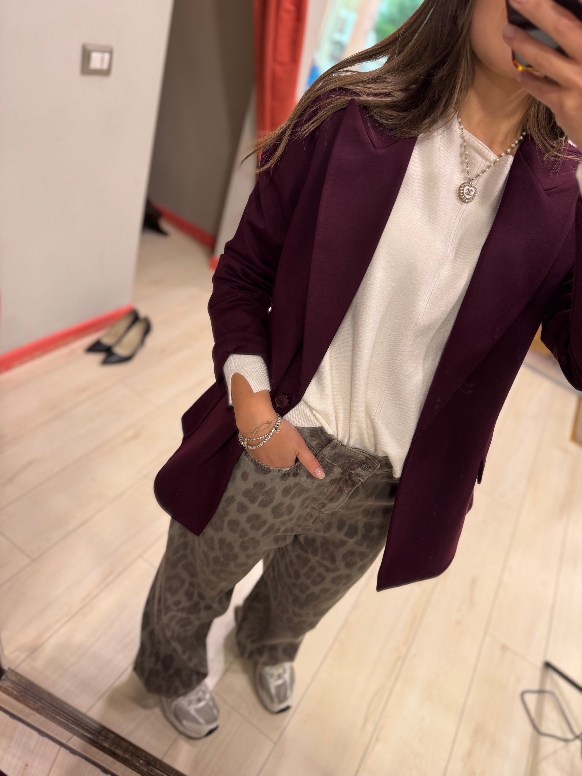 Disponibile in tre colori intramontabili – marrone, blu e bordeaux – è perfetta per creare look professionali, chic o casual eleganti. Da indossare con pantaloni coordinati, jeans o gonne per outfit sempre curati e moderni.