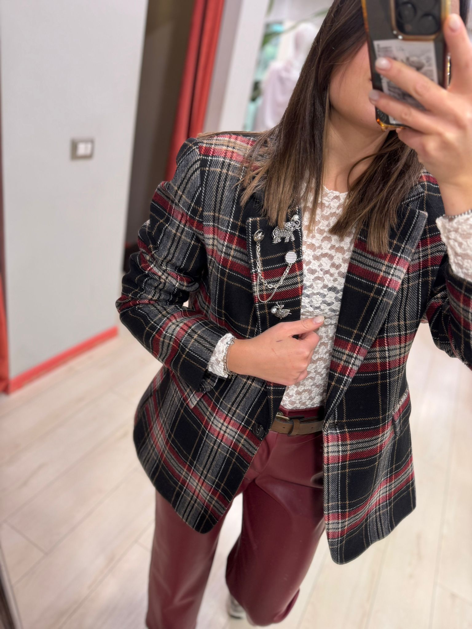 ✅ Disponibile taglie S – M ✅ Motivo tartan, doppiopetto, dettagli gioiello
