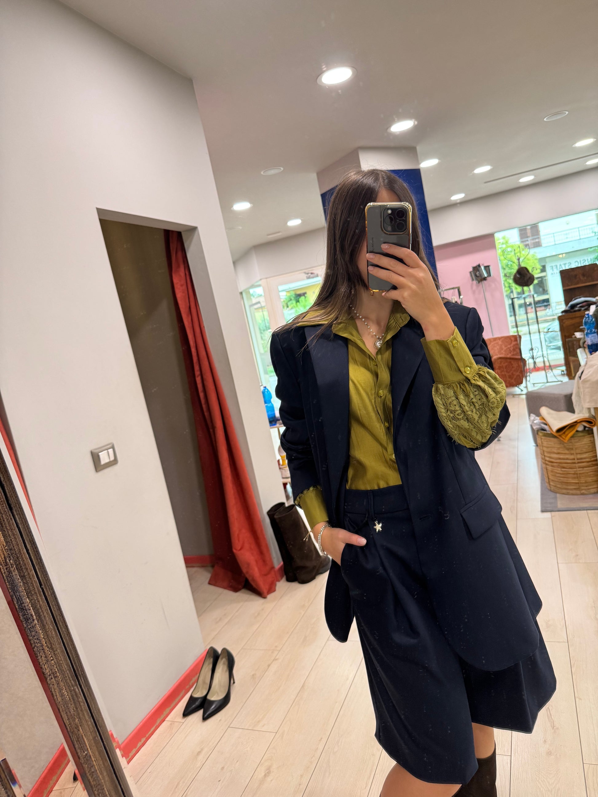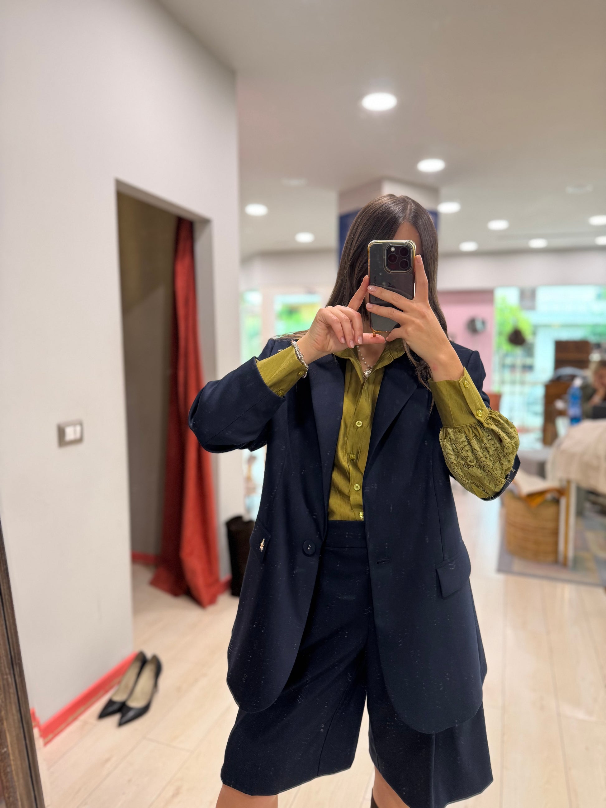 La giacca Souvenir è un capo versatile ed elegante, pensato per valorizzare ogni look con uno stile contemporaneo. Realizzata in tessuto fluido dalla vestibilità morbida e raffinata, si abbina facilmente sia a camicie e top basici, sia a completi più strutturati per outfit dal carattere deciso.