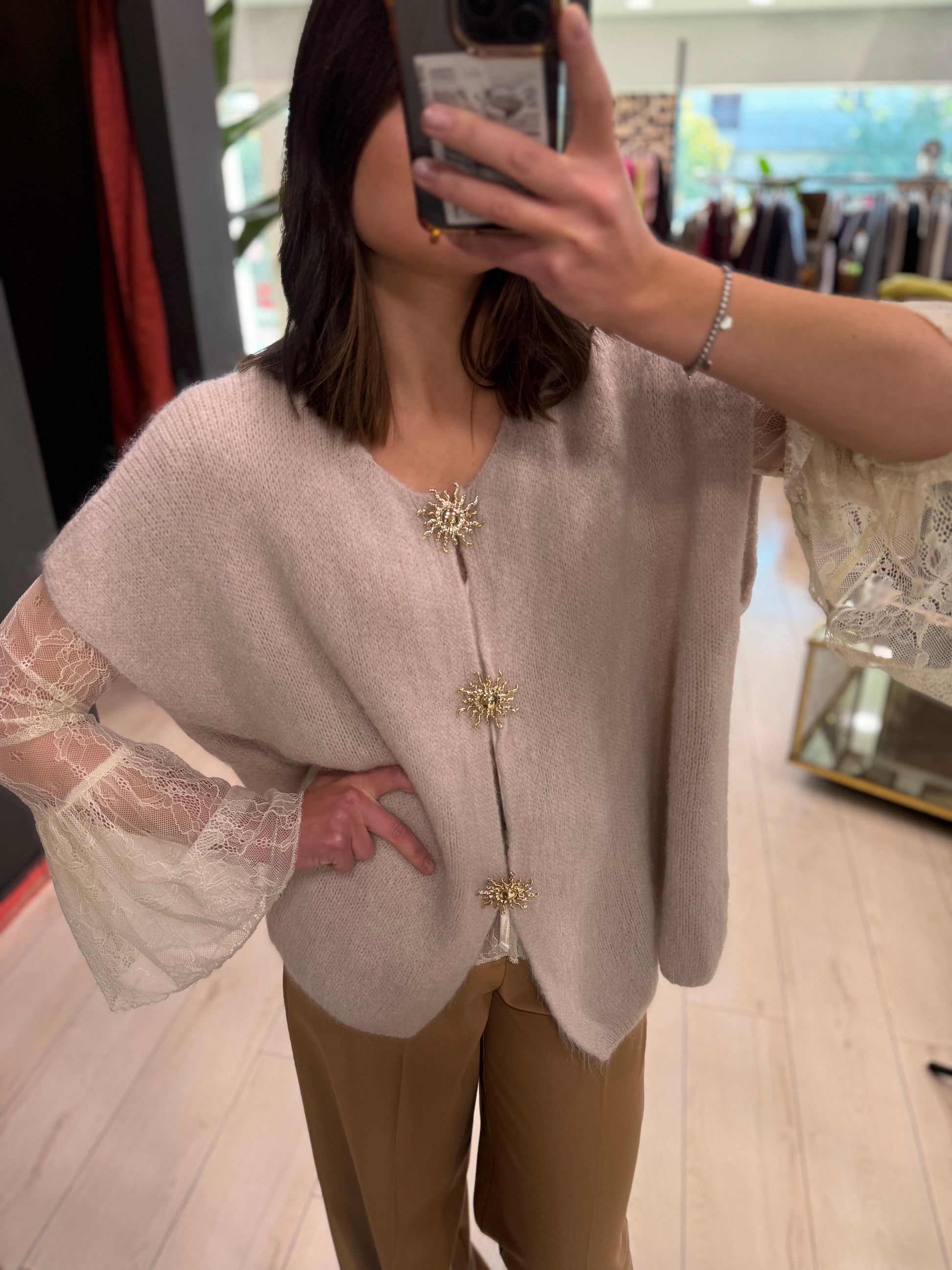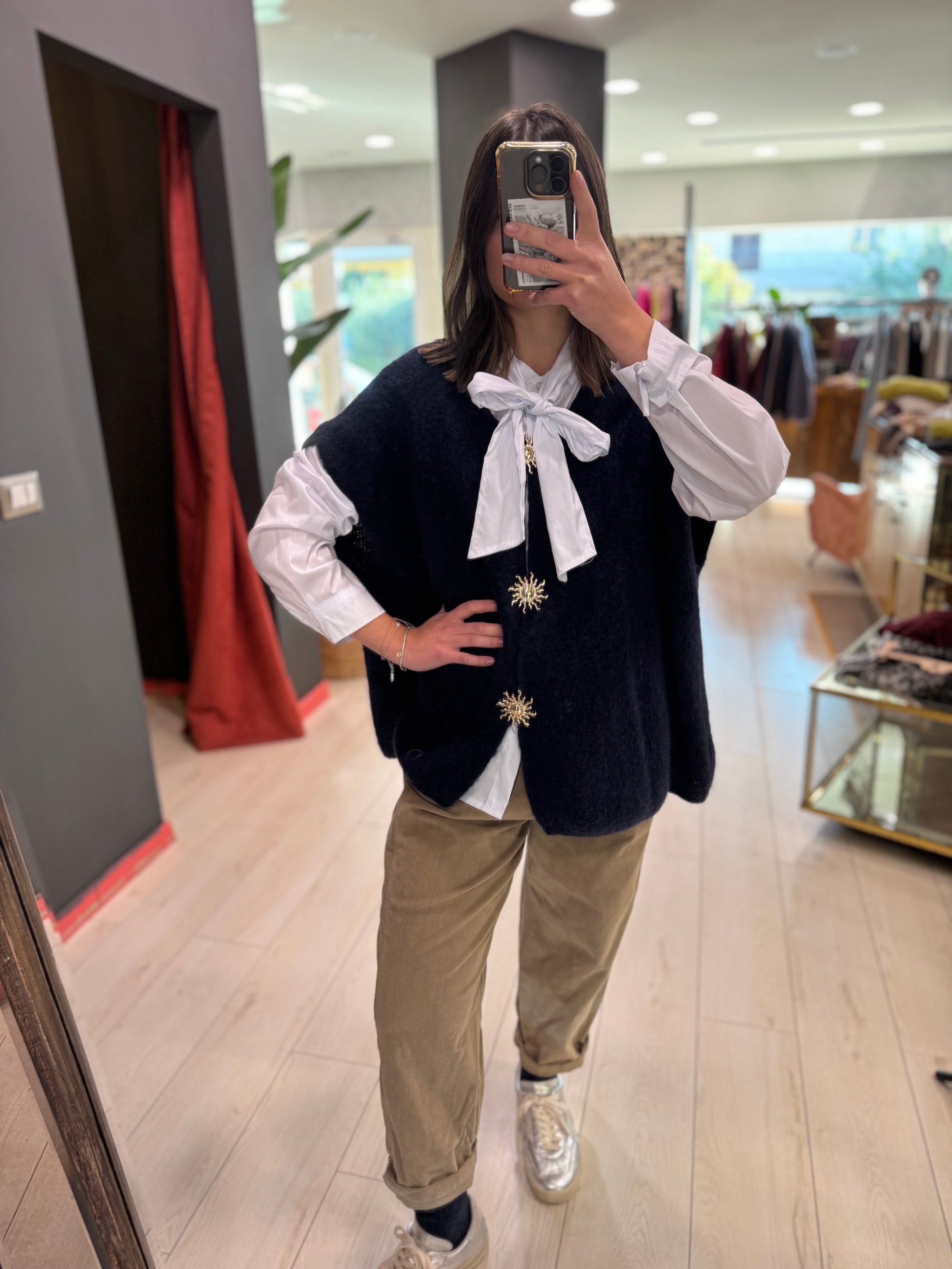 Gilet over con bottoni gioielli oro, disponibile in 3 varianti colore