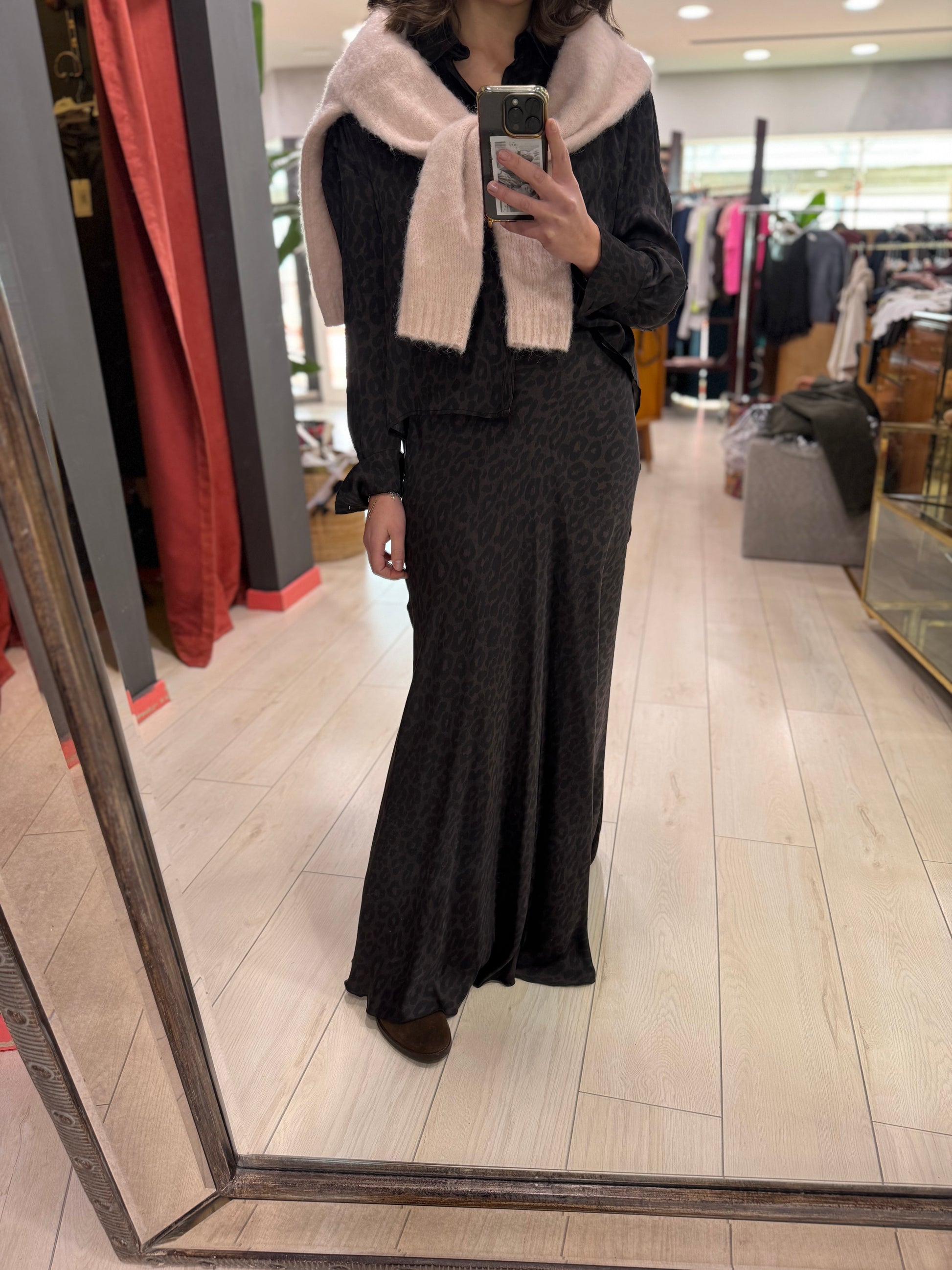 GONNA IN PURA VISCOSA CON STAMPA ANIMALIER LEOPARDATA.
