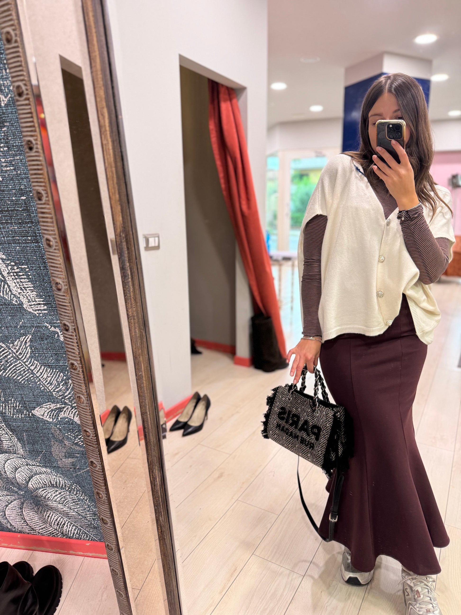 VESTIBILITÀ FASCIANTE CHE ACCAREZZA LE LINEE DEL CORPO. LA SVASATURA AL FONDO CREA UN EFFETTO SIRENA SOFISTICATO E FLUIDO, ESALTANDO LA SILHOUTTE. IDEALE DA ABBINARE AL SUO TOP COORDINATO PER UN LOOK DI GRANDE IMPATTO.