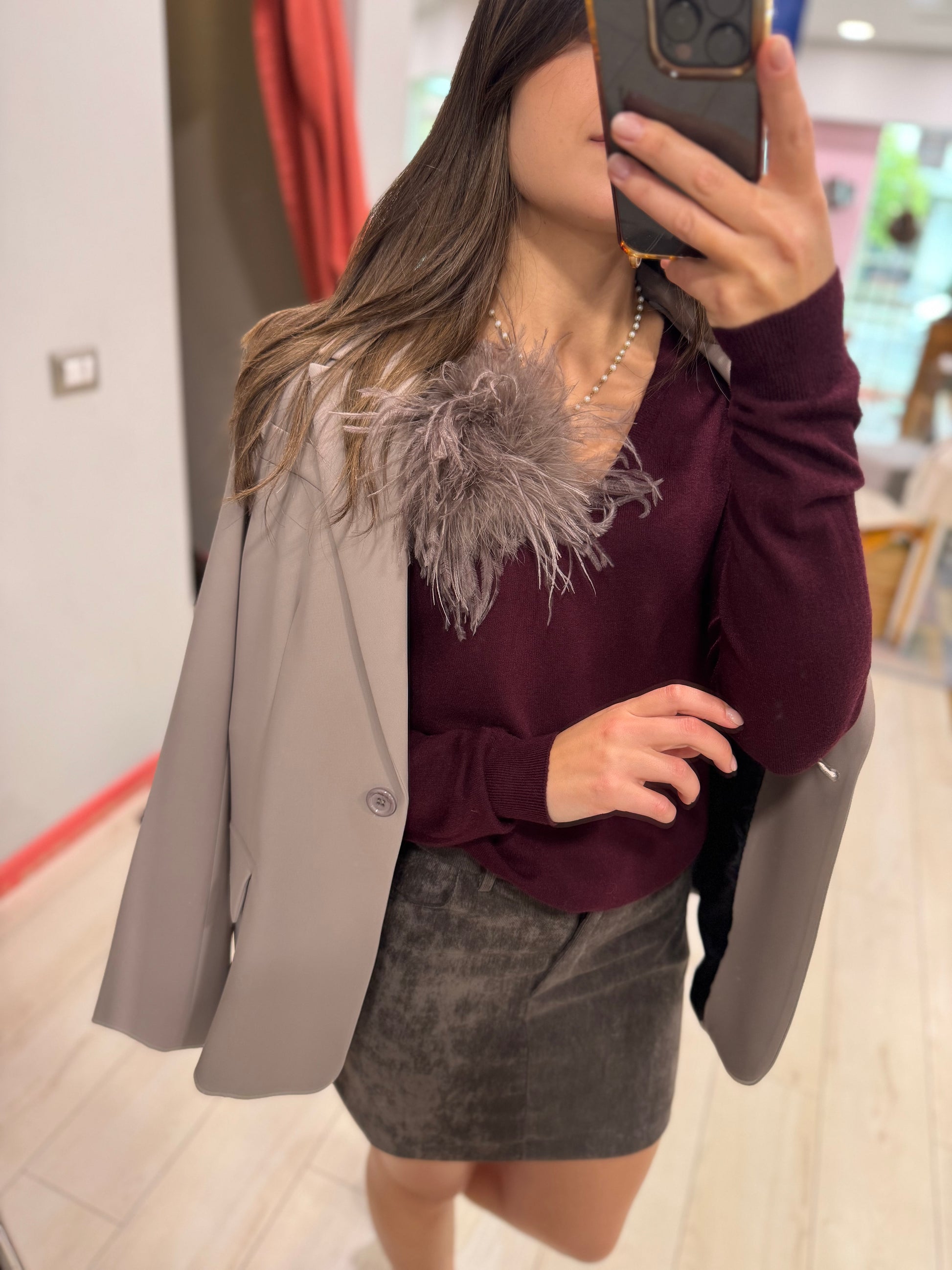 Disponibile in quattro tonalità versatili – bordeaux, marrone, cammello e grigio – è la maglia ideale per creare abbinamenti sempre diversi e raffinati, adatta alla quotidianità come alle occasioni speciali.