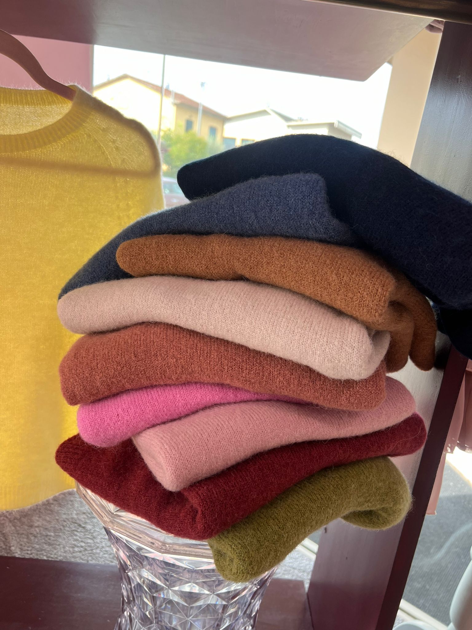 Disponibile in tante varianti: giallo, blu, jeans, cammello, intonaco, coccio, rosa baby, rosa cipria, bordeaux e verde olio.